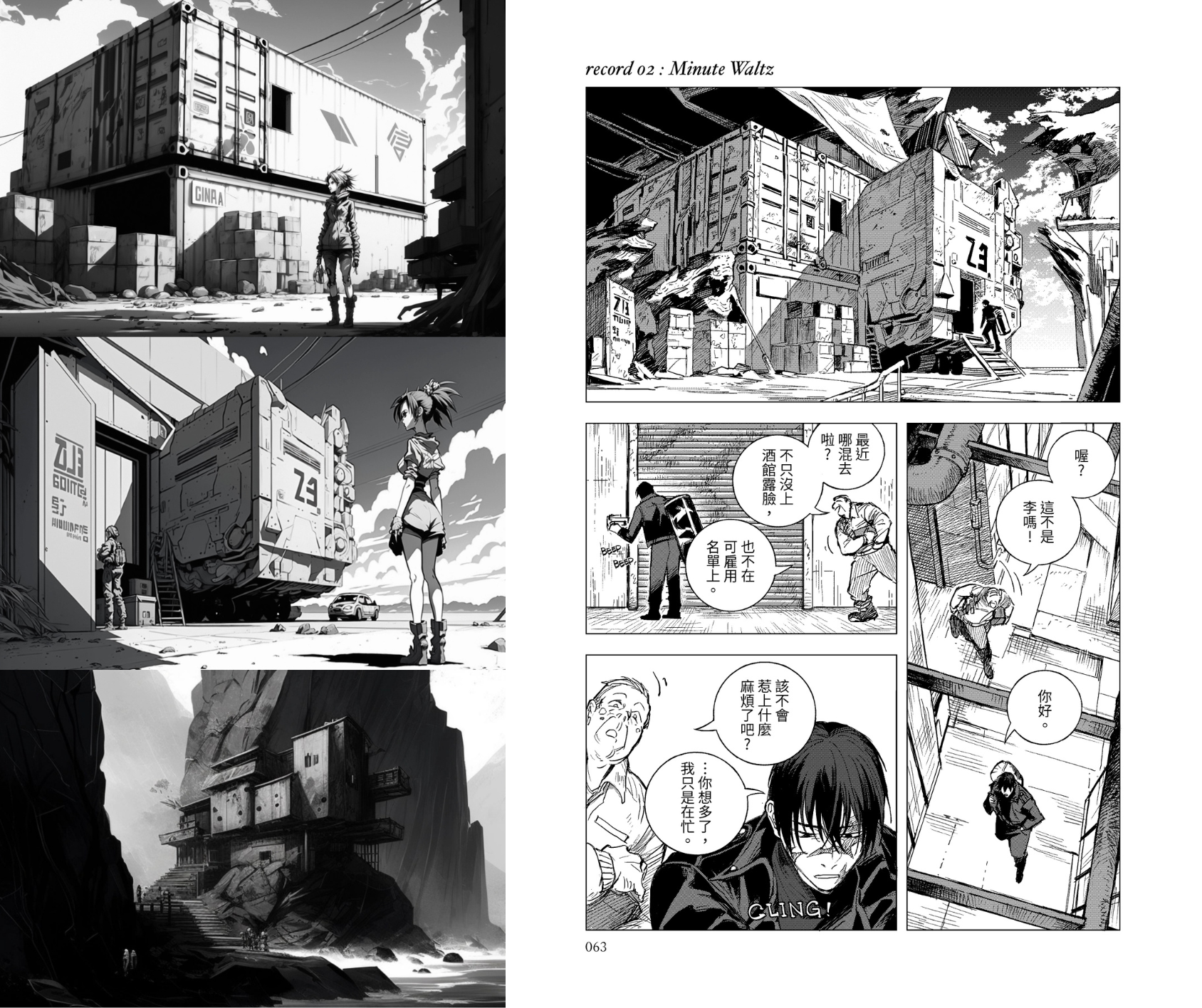 個⼈的使⽤經驗是,如果⼀開始就有明確的⽬標物,例如:想要特定物體的不同⾓度,可能在下指令上會需要花較多功夫,所以選擇了前述中比較隨興的使⽤⼿法,⽬前尚未直接將AI 算圖的成品拿來當作完稿使⽤,都會經過⼀定程度的加⼯或重新繪製,讓畫⾯風格統⼀,降低突⺎感。然⽽即便需要⼀定程度的⼿繪調整,AI 這個⼯具還是幫我節省了許多的時間成本。