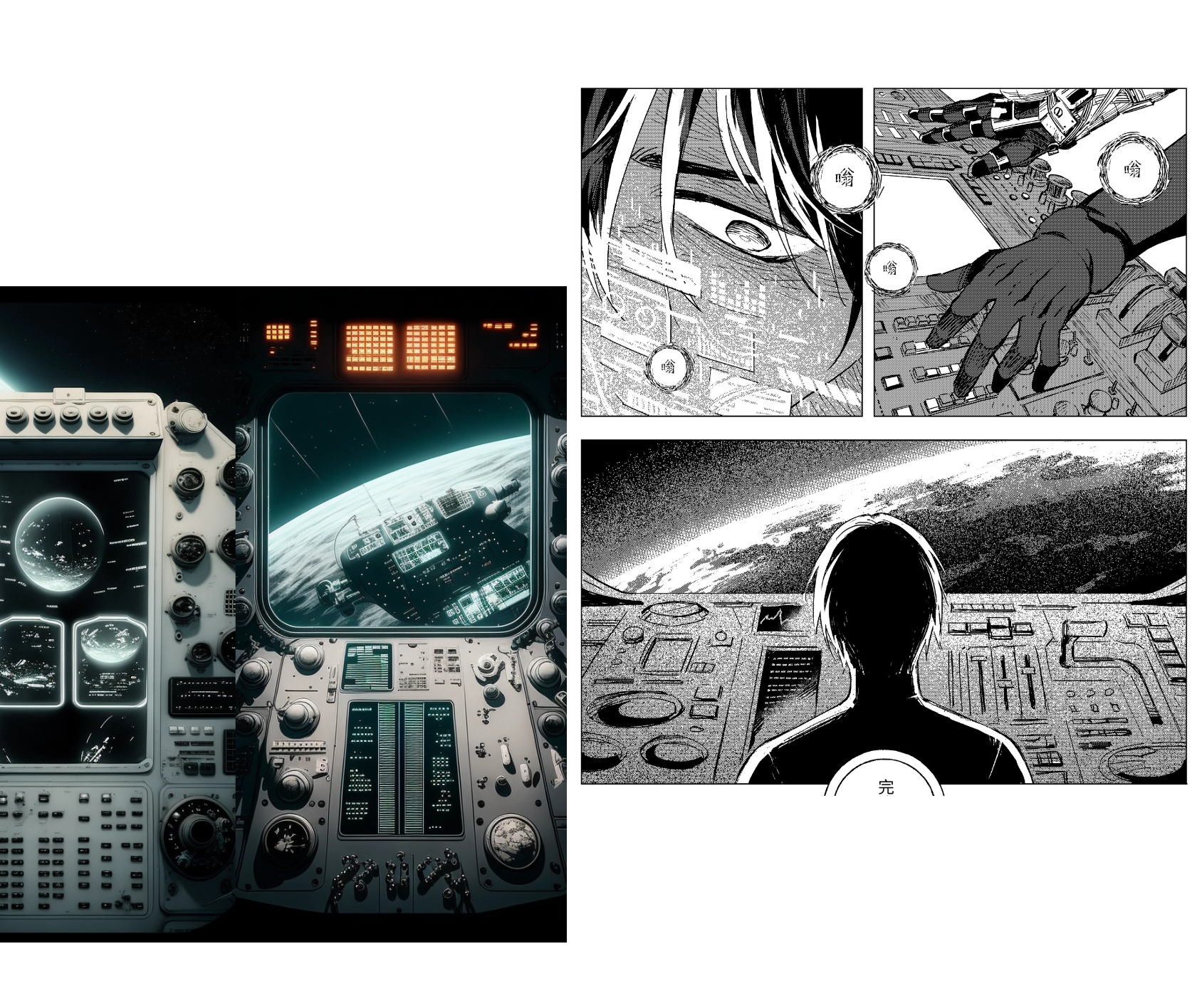 文字算圖:太空駕駛面板/人工面板(左側為Midjourney算圖)