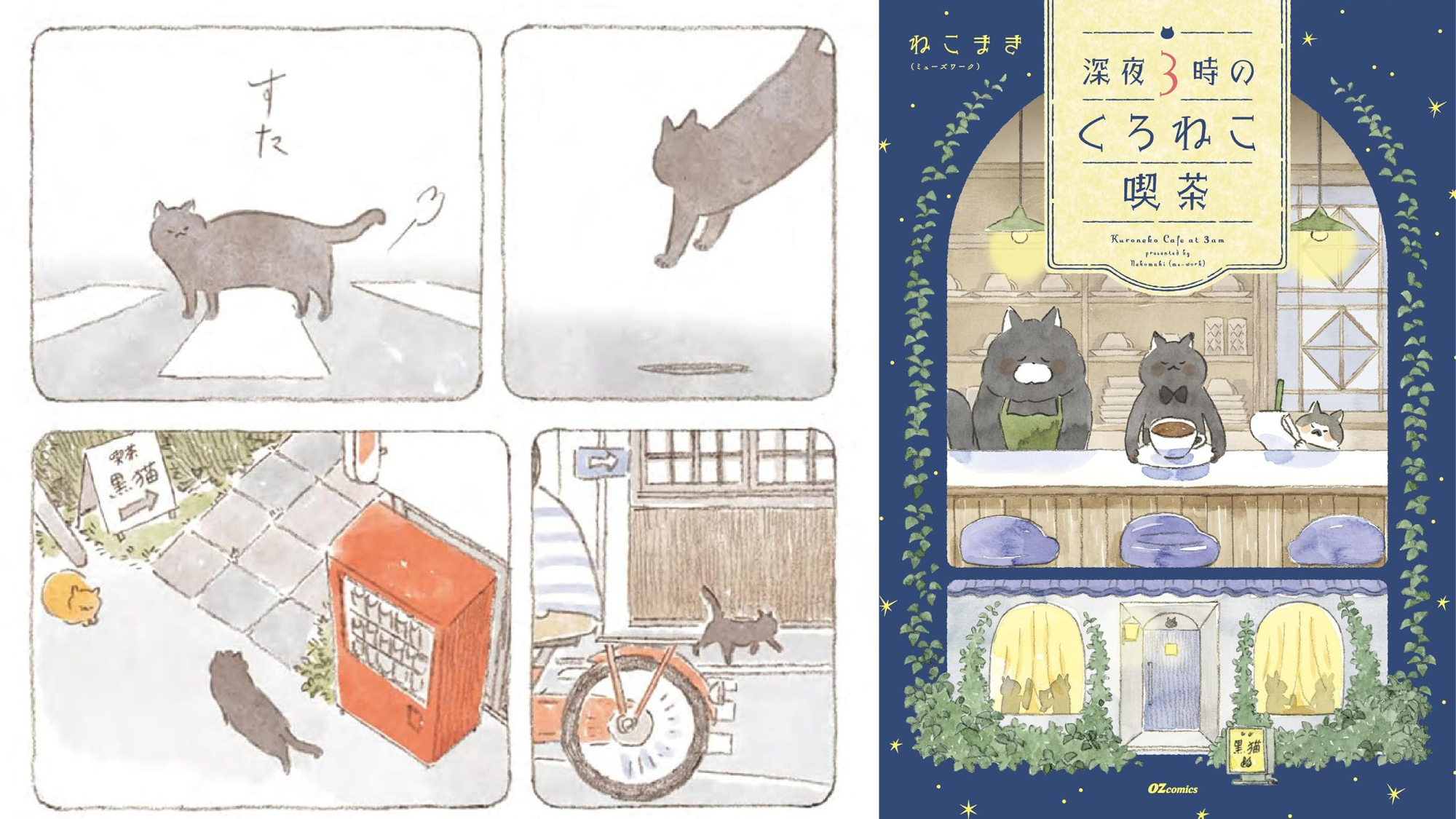 ➤經營網站 「OZmall」 及雜誌 《OZmagazine》的日本出版社Starts(スターツ),於今年10月正式推出全新書籍與漫畫系列「OZbooks」與「OZcomics」。全新OZ品牌以親近、溫暖的概念出發,展現閱讀帶來的療癒、放鬆及期待感。人氣創作者Nekomaki的全新小品《深夜3點的黑貓咖啡館》,便是近期「OZcomics」的創刊主打之一。