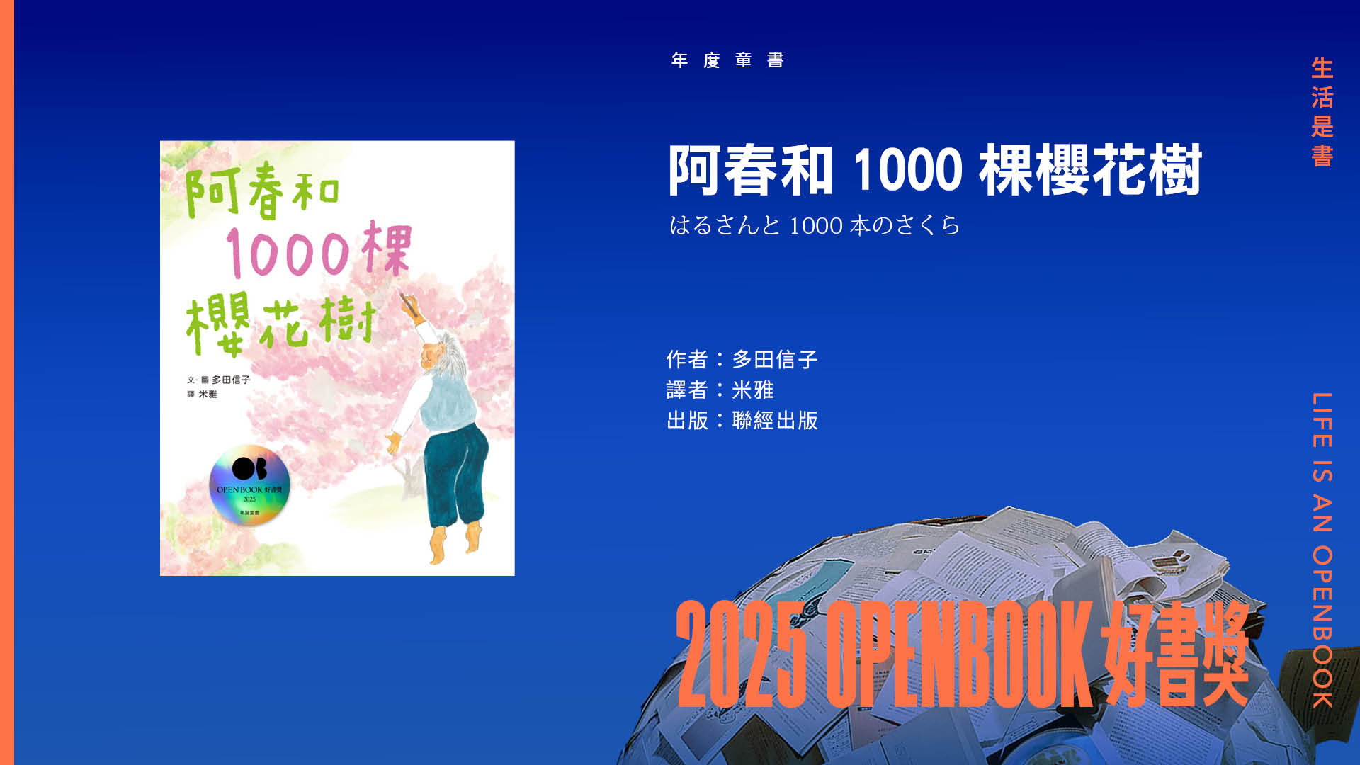 阿春和1000棵櫻花樹 はるさんと1000本のさくら 文、圖:多田信子(ただのぶこ) 譯者:米雅 出版:聯經出版 定價:350元