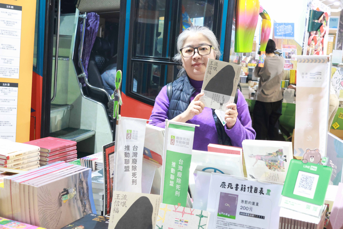 林欣怡介紹,攤位上有《死刑釋憲三國志:匈牙利・南非・立陶宛生死辯》,透過他國憲政脈絡,讓讀者理解死刑在制度層次如何被辯論與翻轉;而他們近期主推的則是《流氓王信福》,聚焦死刑冤案,由理事長張娟芬撰寫。