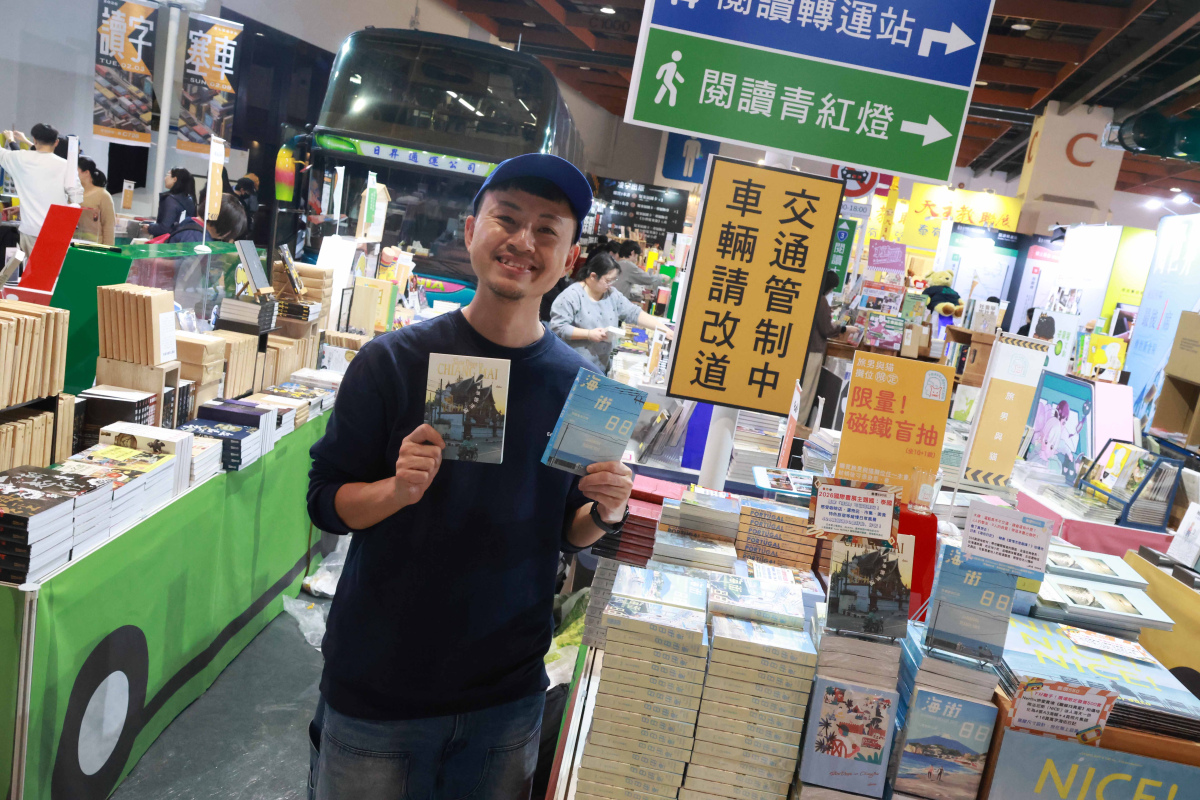 旅男與貓dato手上拿著他個人的新書《慢慢慢清邁》、《海街日日》