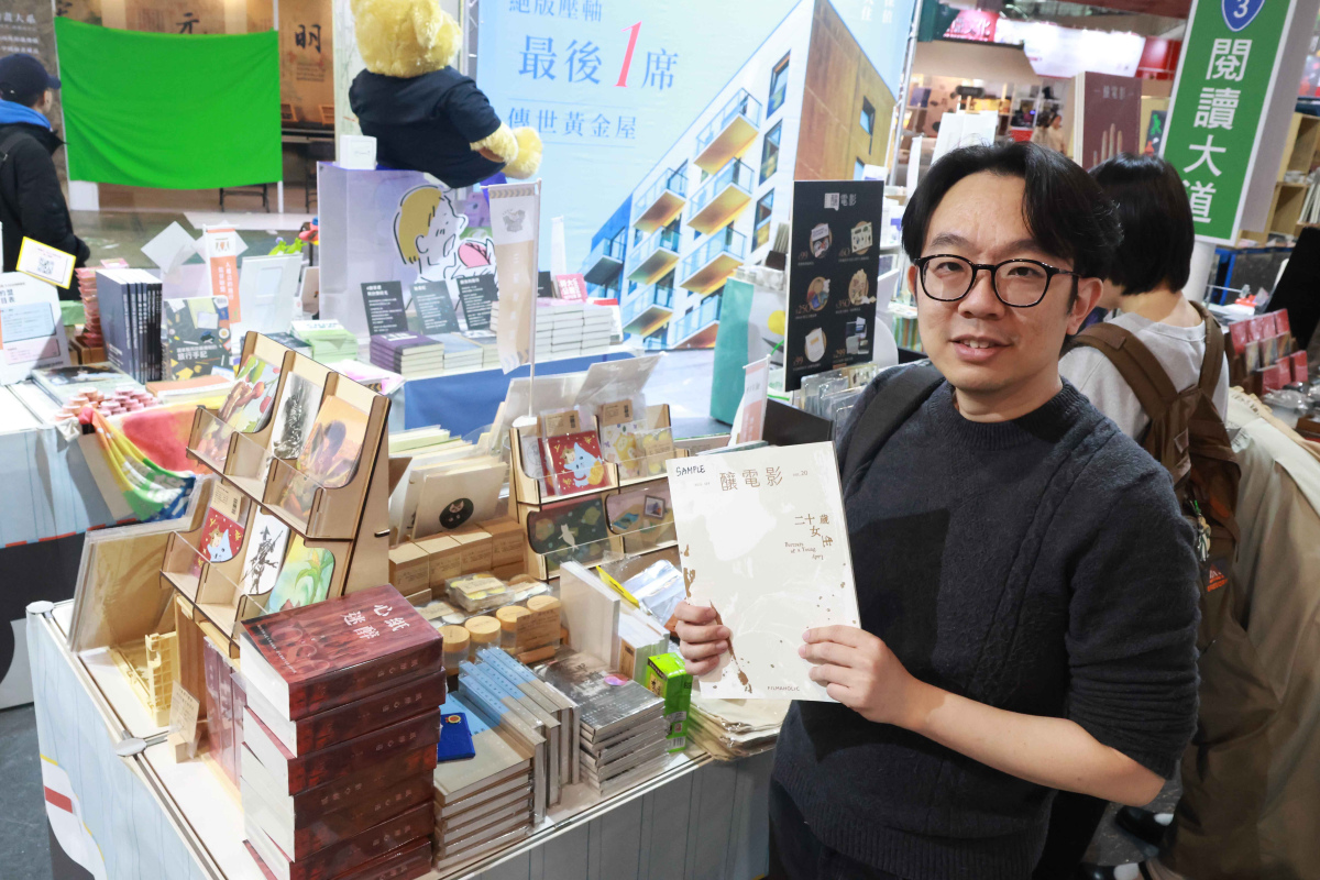 《釀電影》總編輯張硯拓整理攤位的同時,接受Openbook的短訪,他提到《釀電影》除了是數位影評媒體,過去四、五年也固定出版季刊,現場販售《釀電影》實體雜誌,這幾年陸續做了貼紙、日曆、徽章等周邊,也一起帶來書展。