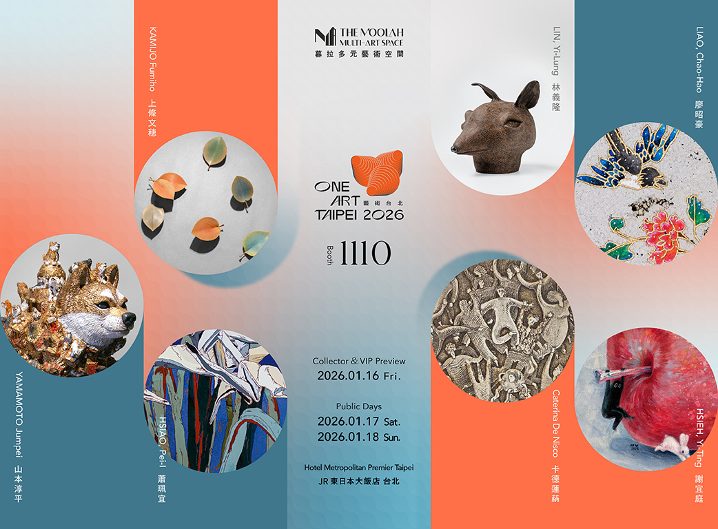 One Art Taipei 2026 藝術台北暮拉多元藝術空間|Booth 1110「忘形之人 Metamorphosis of Being」『忘形之人』為 2026年「暮拉多元藝術空間」於 One Art Taipei 所提出之策展主題。其構想概念源自英國人類學家梅蘭妮‧查林傑(Melanie Challenger)的《忘了自己是動物的人類》一書,透過重新思考身而為人的意義及其身份界定,藉以回應人與人、動物、自然、信仰,甚或與文化之間的連繫關係。當形體不再是穩固的邊界,而是一種可被鬆動、轉譯與再生成的存在,這樣的「忘形」遂指向了一種自我更新與不斷建構的狀態。人與非人之間的界線、自然與人為的交疊、精神與物質的流變,皆於此顯現。作品彼此構成一種有機的呼吸,人們似乎也就能從物質身體、動物象徵、語言符碼與文化賦形之中,感受到藝術家於生命樣態的展現——以創作作為對形體的參與行動,也作為一場對人之為人的再探問。▌One Art Taipei 2026 藝術台北▌暮拉多元藝術空間|Booth 1110藝術家廖昭豪、山本淳平、林義隆、上條文穂、謝宜庭、卡德蓮蒳.德尼斯科、蕭珮宜藏家預展2026.01.16 週五 12:00-19:00貴賓預展2026.01.16 週五 14:00-19:00公眾展覽2026.01.17 週六 11:00-19:002026.01.18 週日 11:00-19:00展覽地點JR東日本大飯店 台北台北市中山區南京東路三段133號