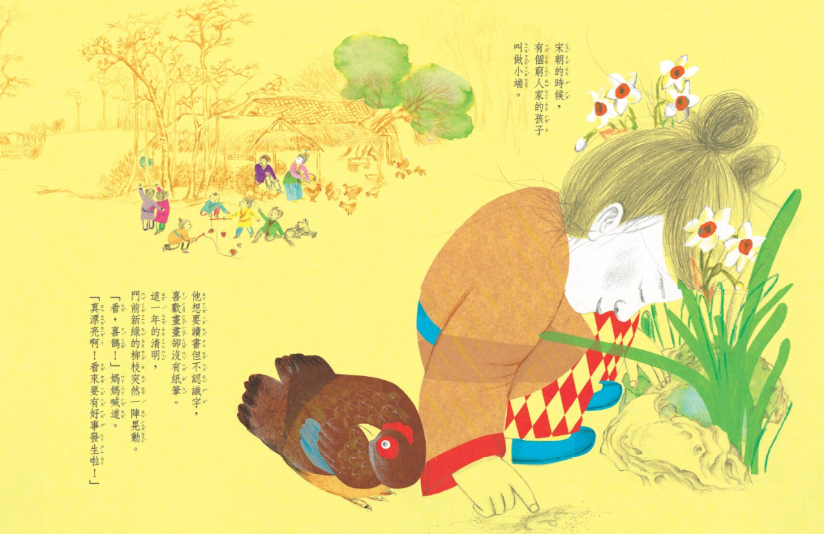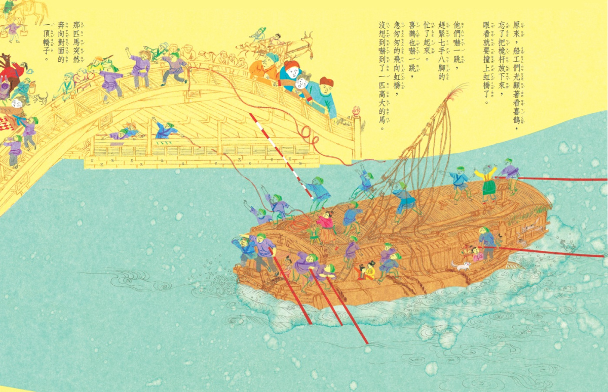 畫的正面,男孩小端與神祕的喜鵲沿路捉迷藏,汴京街道就是他倆的遊戲場。畫的背面,則是北宋〈清明上河圖〉 復刻版,重現經典原味。當長達7公尺的褶頁「唰」一聲拉開,雙面對照的編排巧思與視覺震撼同步降臨,所有人物、景色、轉折都串連起來了,讀者們不只看故事,也讓自己在歷史名畫裡走了一遭。戴芸的文字簡潔無可挑剔,郁蓉的畫筆考究兼顧古今,理解了文化,添入了趣味,成就了這本匠心獨具的作品。【內容簡介➤】