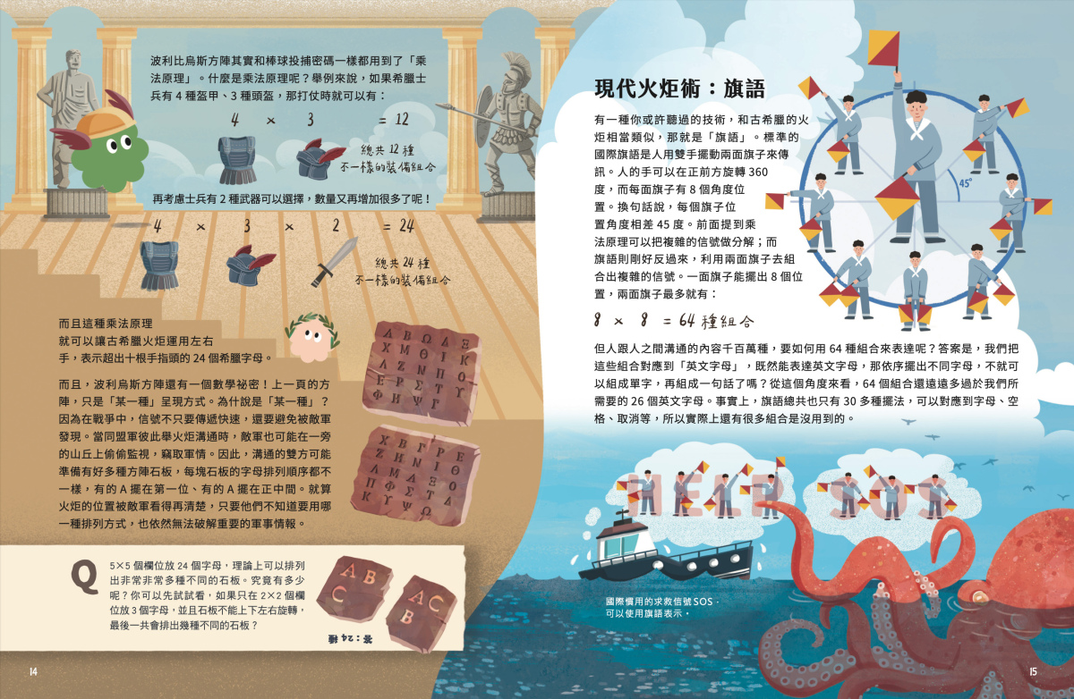 先別被「數學」這兩個字嚇跑了!這本書列舉出許多歷史上、生活裡與名人相關的例子,來拉近我們與這門學科的親密距離。舉凡:視力測驗、棒球場上的投捕暗號、古今戰爭的傳令與保密,以及我們每天登入登出的各種帳號密碼……背後其實都有一段故事與學問呢。說到底,數學不該只是課本黑板上的複雜算式,而是除了聲音文字動作之外的一項人類溝通語言,有溫度、有情意、感受得到,也使用得到。這本書從內到外都散發如此積極而溫暖的企圖心,把孩子的理解與人類的情感放在第一位,一章章讀下來,知識分量越重,越是理解享受。【內容簡介➤】