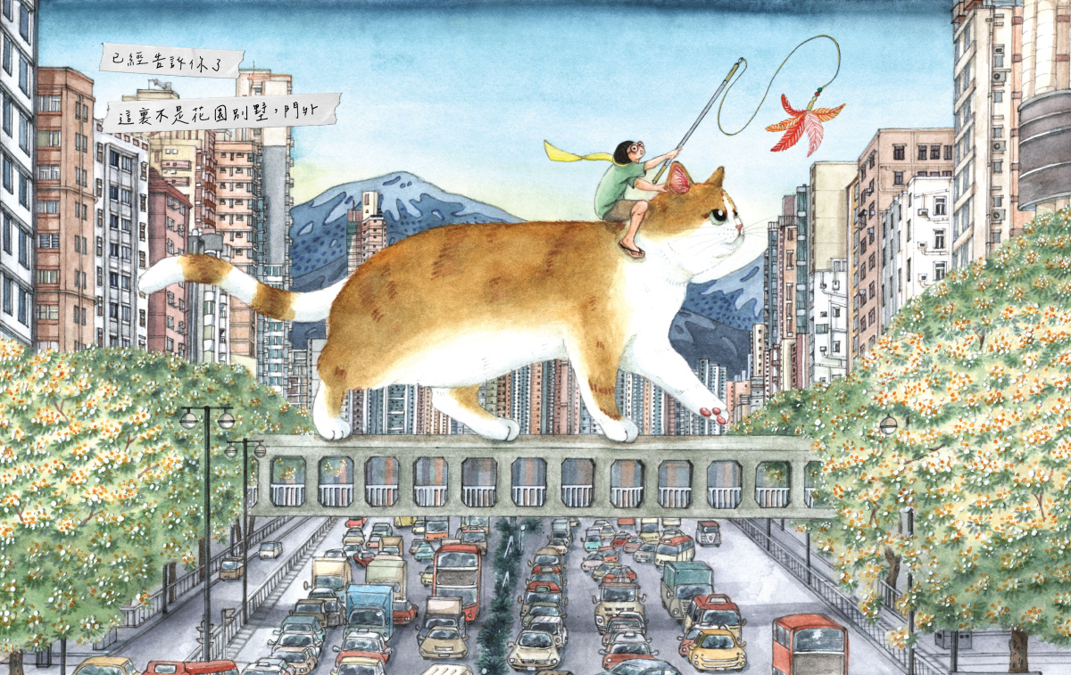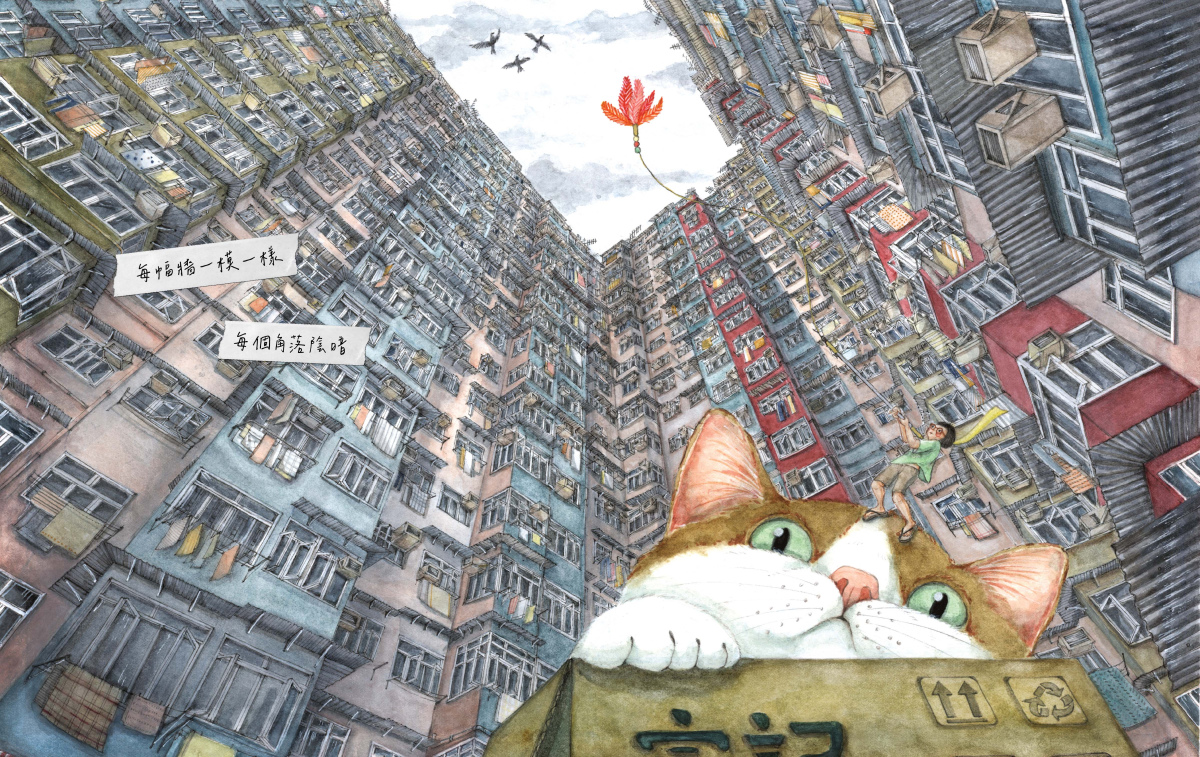 這本書「非常香港」,那幾乎佔據了整個畫面的樓層與格窗,那被擠到只剩一點點的天空,都是這座城市的明顯印記。人與貓的對語喃喃迴盪,撞開了擁擠緊閉,也拾憶了溫馨過往。繪者劉佩佩倚著西西〈愛說話的貓〉 詩句,畫出了關於這貓這詩這城的飽滿想像。輕輕「喵」一聲,現實與奇幻、孤獨與陪伴、新奇與陌生,以及種種只可意會不可言說的幽微情緒,全都凝聚在熟稔懷舊的市景街道上。世界再快也要緩下腳步,把這一切牢牢聽著、看著、記著。【內容簡介➤】