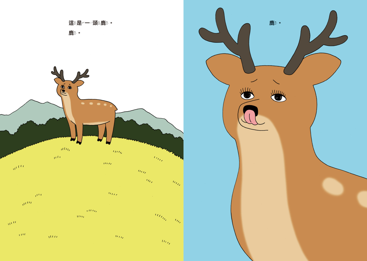 這本書全是鹿,滿滿的鹿——不是吃草曬太陽的那種鹿喔,而是會去三溫暖泡SPA、會去蔬食餐廳吃到飽、像棒球明星一樣敲出全壘打的鹿,簡單來說就是過著人類生活的鹿啦。老實說,這一切實在太不合理了,但既然鹿兒不尷尬,咱們讀者也就盡量接招,盡情享受吧。瞧瞧每一隻鹿的表情動作,有多無辜多正經多投入啊,還有那些藏在圖畫裡的「友鹿安感冒液」、「可口可鹿」 台灣限定諧音梗,更是讓人念一遍笑一遍,想像力與搞笑力果真「無孔不鹿」!【內容簡介➤】