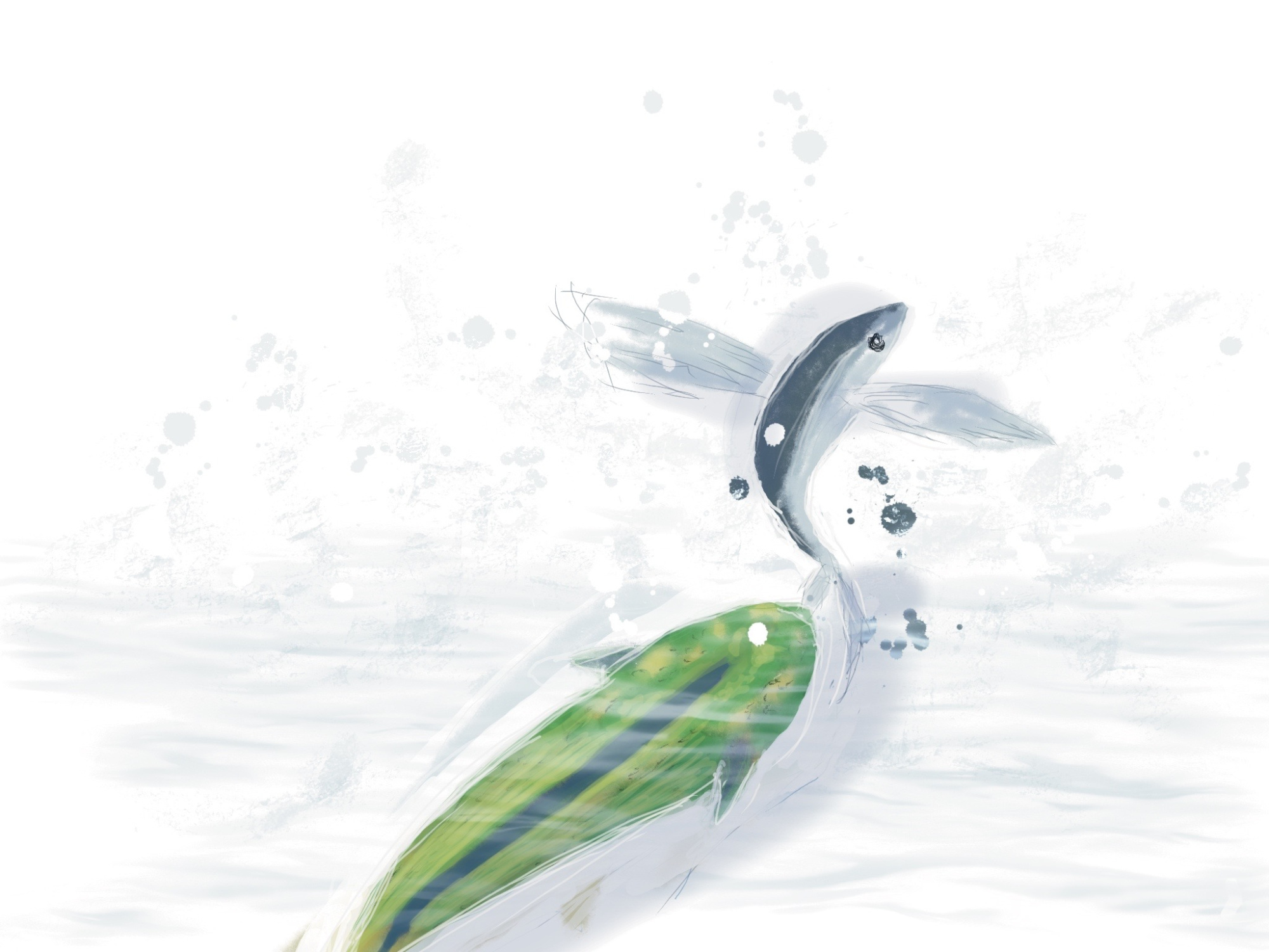 後來有個轉變,她生了一場病之後,在休養過程中,我常常帶她出海。漸漸體會到我為什麼這麼喜歡海,她就答應幫我的書畫插畫。