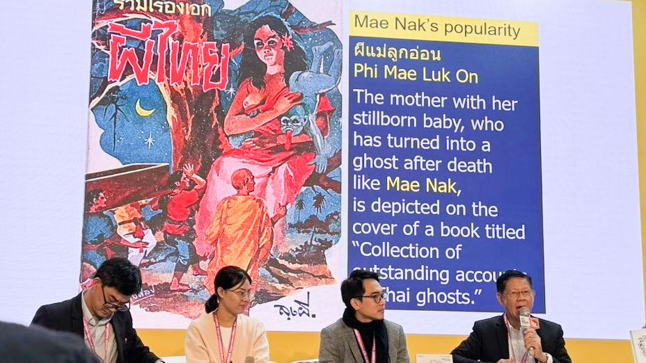 講座上,阿涅克藉由簡報檔,帶領台灣讀者理解泰國的靈異敘事如何建立在宗教生活、文史田野調查,並透過不同世代的出版,讓鬼怪的形象持續深化與變形,與當代社會保持對話。這些內容累積,也提供了龐大的繪畫與圖像,成為重要的文化資產與創作者的養分來源。