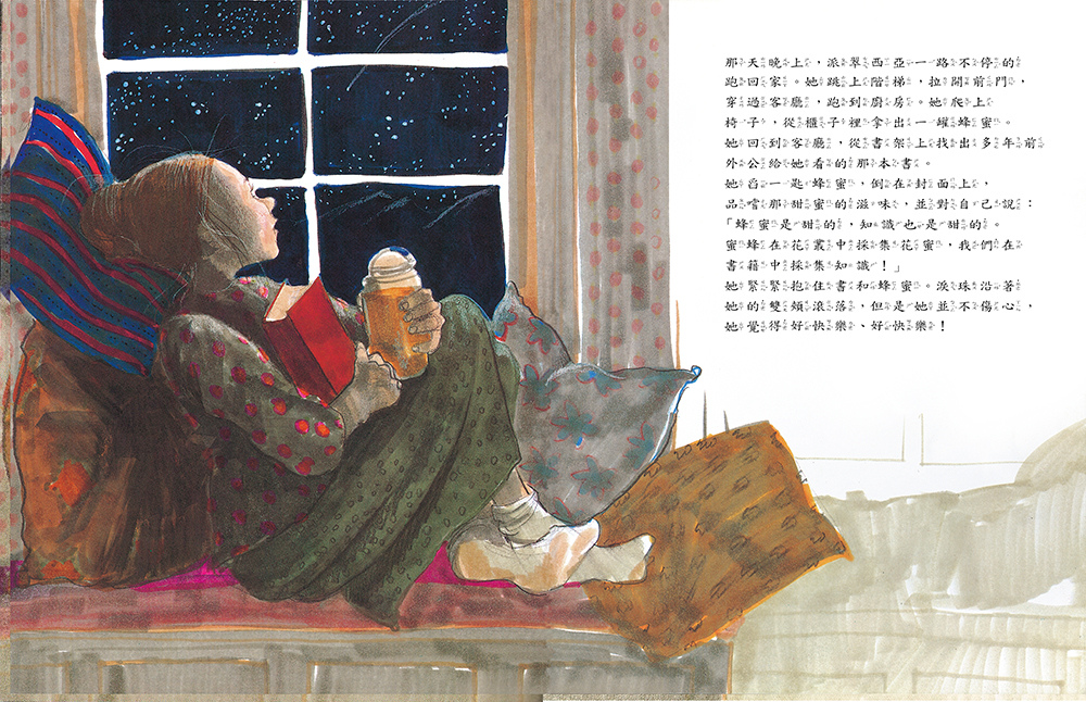 如同《蜜蜂樹》裡追著蜜蜂去找蜜蜂樹的情節,知識和智慧必須透過書本一頁頁的內容去追求採集,波拉蔻終於嚐到了閱讀如蜜的滋味。她最喜歡的書籍包括:《彼得兔》、《格林童話》、《100萬隻貓》和蘇斯博士的《大象荷頓在孵蛋》,因為太喜歡這隻大象,她還創作了《Emma Kate》這本書向蘇斯博士致敬。