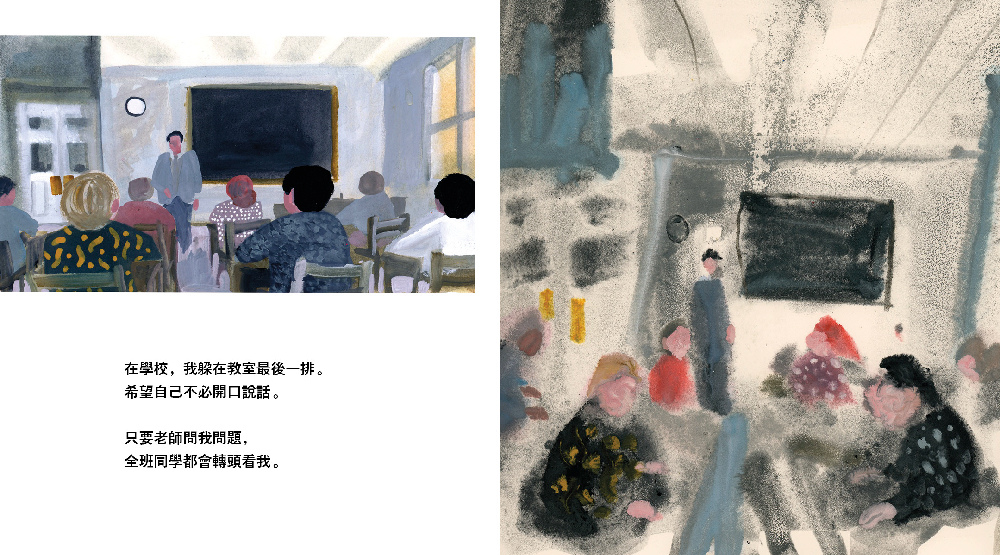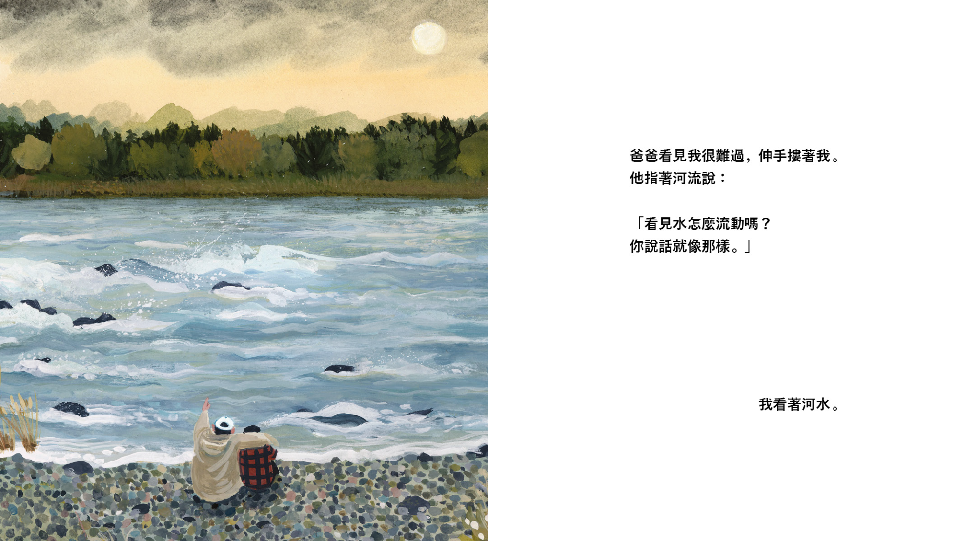 幸運的,史密斯遇到另一位全力支持他的編輯波特(Neal Porter),邀請他和詩人喬丹.史考特(Jordan Scott)合作《我說話像河流》。這個故事來自史考特個人的深刻體驗,以一個口吃的小男孩第一人稱敘述。史密斯並未使用先前為人熟悉的酣暢墨彩呈現,而是用了很多水彩、粉彩和礦物顏料,並用玉米澱粉刷上紙張打底,或在紙面加上造粒液,讓看似抒情的印象派畫風中,隱藏著不平整的肌理,暗喻著小男孩說話的流動與不流動。
