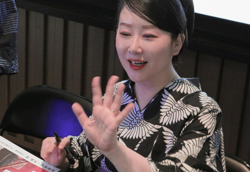 茉莉書坊履安:先前有看過老師的一些照片跟訪問影片,今天現場看到本人,覺得老師真的很活潑、幽默。雖然穿著很正式的服裝,但幽默感是藏不住的,這就是東村明子老師給人的感覺。