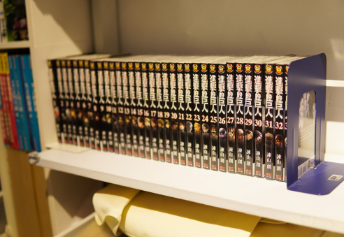 另一面書架上擺滿非賣品,是「限定閱覽圖書」,提供特別收藏的書籍讓讀者在店內閱讀。其中有全套《進擊的巨人》漫畫,那是一位住在附近的常客拿來分享的。林齊晧指著另一排書架說:「後來另一個「寶島少年兄」聽友看到,就說那他也分享《迷宮飯》好了,就拿來擺了。」還有聽友貢獻了動畫《暮然回首》的電影原聲帶。