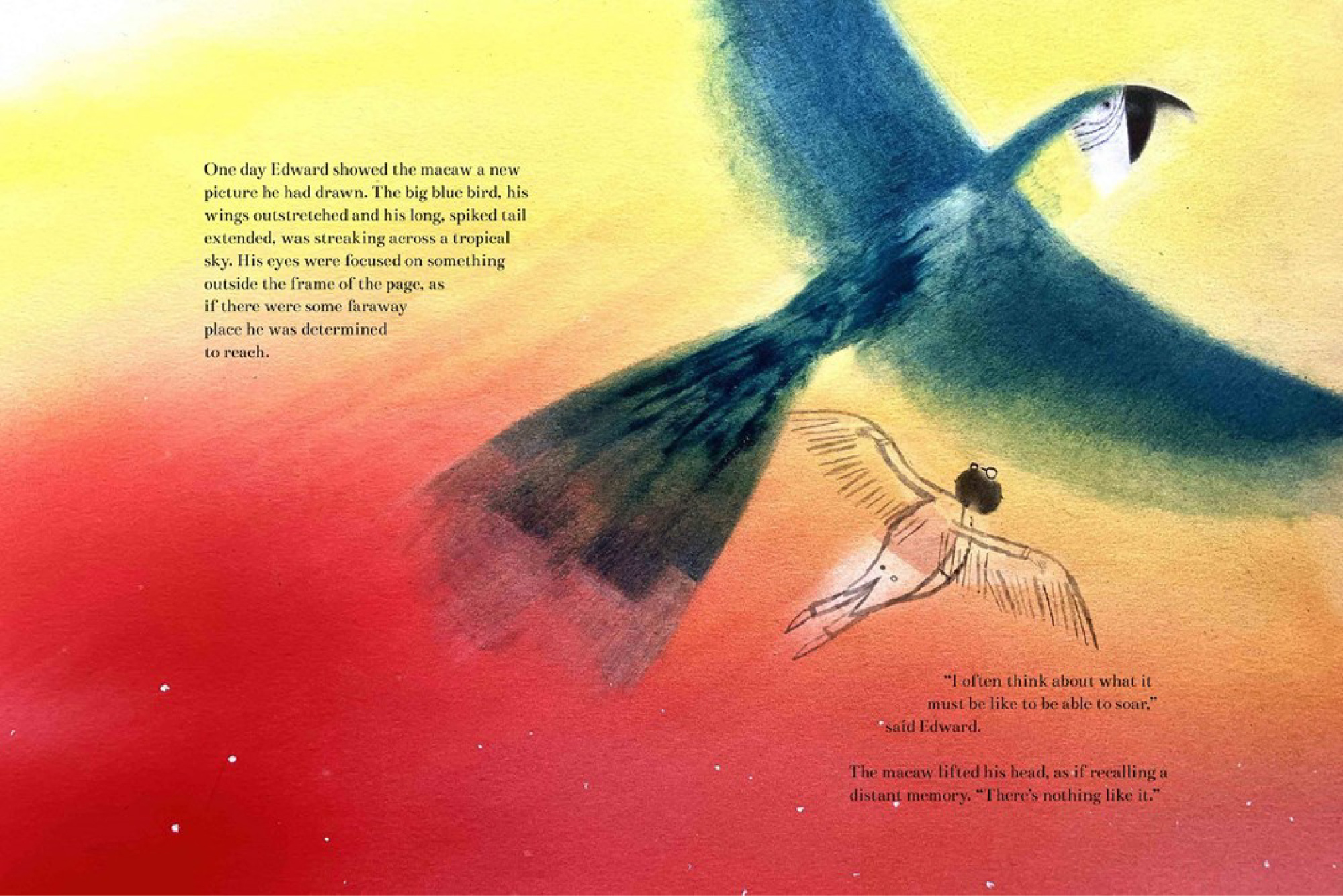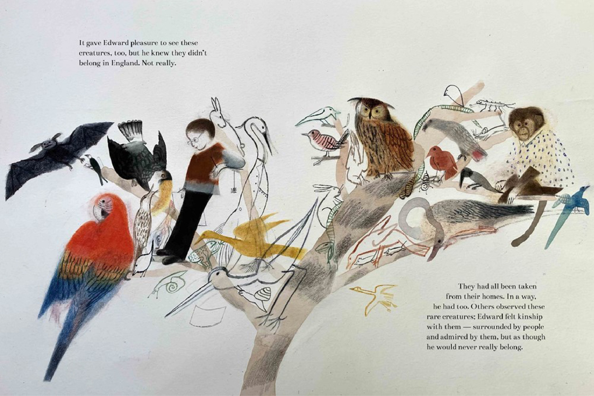 善於觀察自然的愛德華・里爾,內心始終渴望像他描繪的鸚鵡一般,展開美麗的翅膀在天空中自由飛翔,他的作品是諷刺維多利亞時代保守的封建氛圍、刻板的社會規範和墨守成規的利器,無論在他身為插畫家而敏銳觀察自然所刻畫的作品中,或在他天馬行空的荒誕詩歌中,愛德華・里爾都用深刻的同理心為世界注入了新的活力,為兒童文學另闢蹊徑。●
