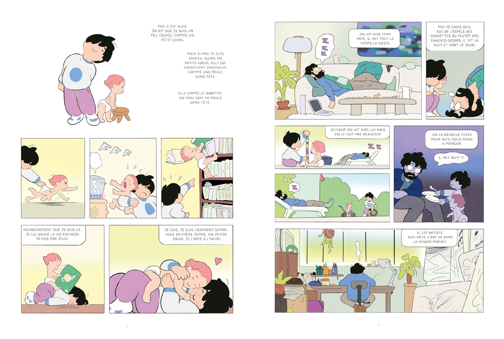 年幼的奧爾多和包著尿布的芭貝特與他們的父親住在一起,他們的父親是漫畫家,整天都在睡覺,母親是人類學家,為了研究而周遊世界。哥哥奧爾多,妹妹芭貝特,他們玩起來都很「瘋狂」,儘管奧爾多淘氣又頑皮,但卻總是耐心的陪伴著妹妹探索世界,無止盡的呵護她。當爸爸熟睡時,奧爾多和芭貝特依然玩得很開心,他們決定一起去游泳池游泳,可是由於爸爸工作太忙碌,疏忽了維護自家花園,游泳池已經變成了雜草叢生的青蛙生態池......